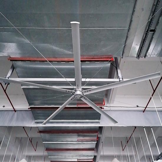 18フィート ギアレス ダイレクトドライブ PMSSM HVLS 酪農場のシーリングファン 大きな HVLS があります永久磁石を使用したシーリングファン インナーローター デザイン。 それは5枚の刃と鳥の羽の形であり、大音量、低速、低声、そしてインラインの流体力学を実現します 原理 エネルギーコストの削減、10年間の無料メンテナンス、 牛の の改善が可能です。快適さと牛乳の増加 生産性 もっと